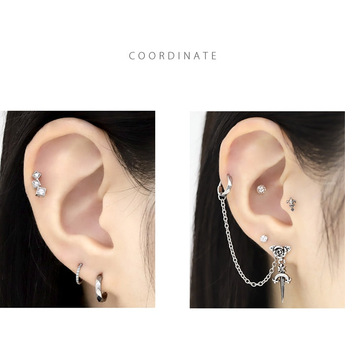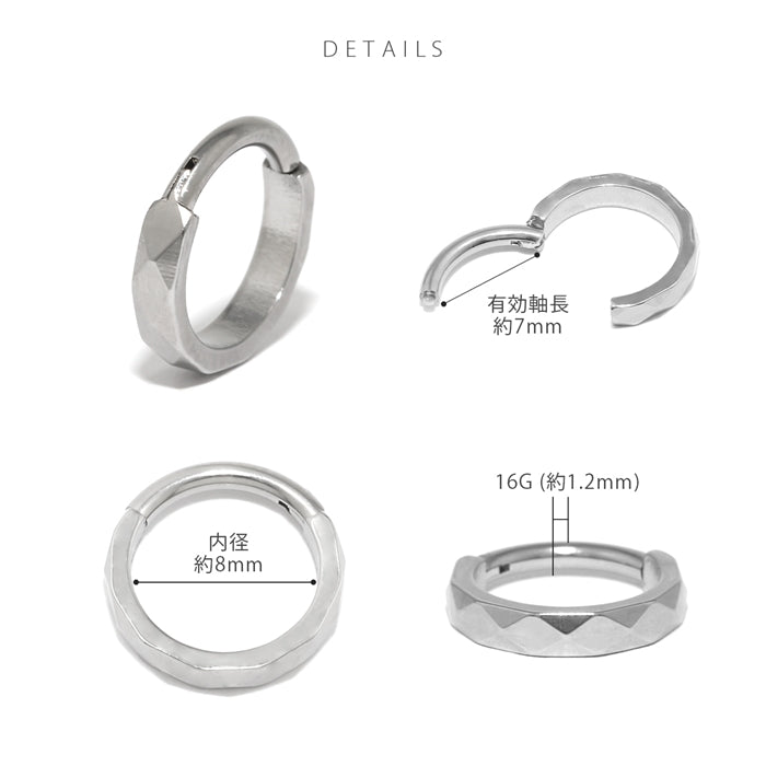 rin-023 ステンレスピアス 16G ダイヤモンドカット シンプル シャープ セグメントリング 16ゲージ ピアス サージカルステンレス 片耳用