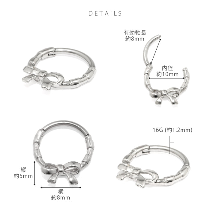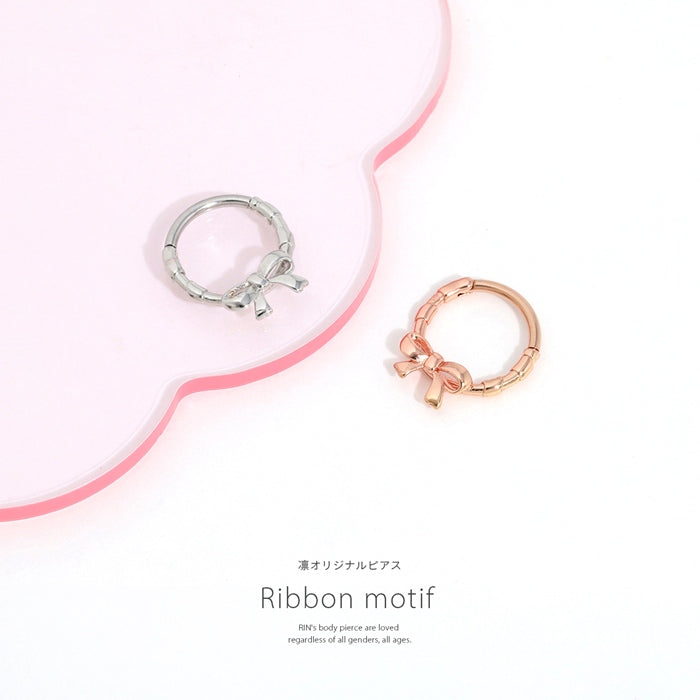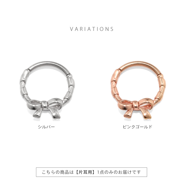 rin-024 軟骨ピアス 16G ボディピアス リボン バレエコア シンプル 大人カワイイ セグメントリング ピアス サージカルステンレス 片耳用