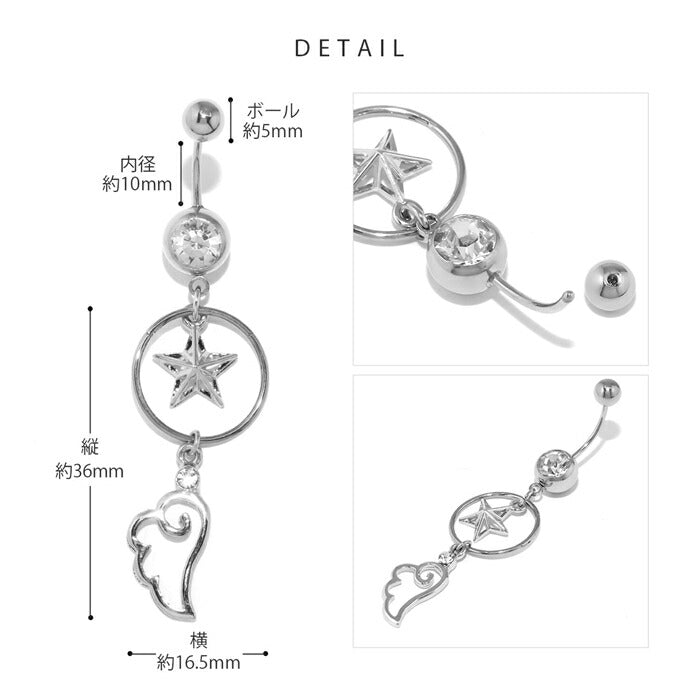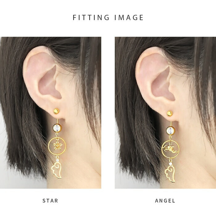 rin-set-002 ボディピアス 14G 18G 軟骨ピアス ピアス へそピアス 金属アレルギー つけっぱなし サージカルステンレス 星 スター 天使 エンジェル 羽 翼 シルバー ゴールド セカンドピアス ファーストピアス セット かわいい 大人 上品 耳たぶ 片耳用
