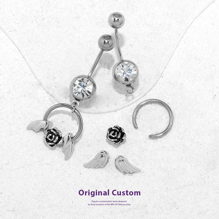 rin-set-004 ボディピアス 軟骨ピアス 14G 18G 金属アレルギー 金属アレルギー対応 つけっぱなし チャーム ピアス バラ 薔薇 エンジェル デビル 翼 羽 カスタマイズ ビーズリング カスタム かわいい シルバー バナナバーベル へそピアス 耳たぶ 片耳用