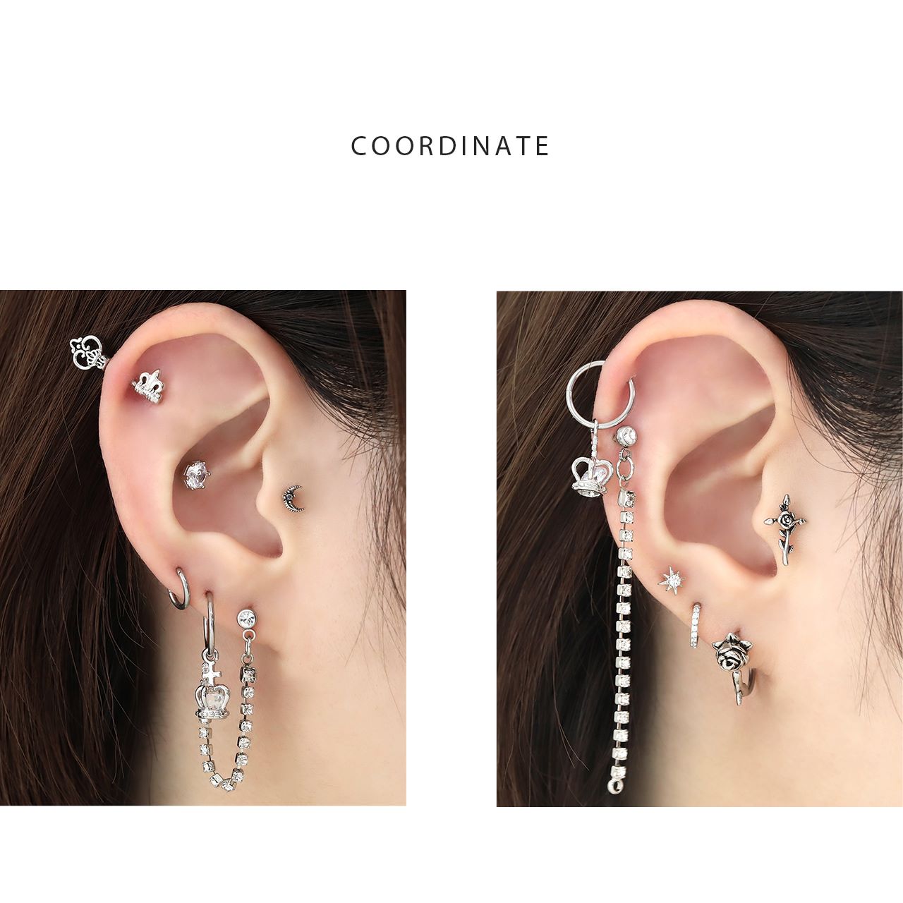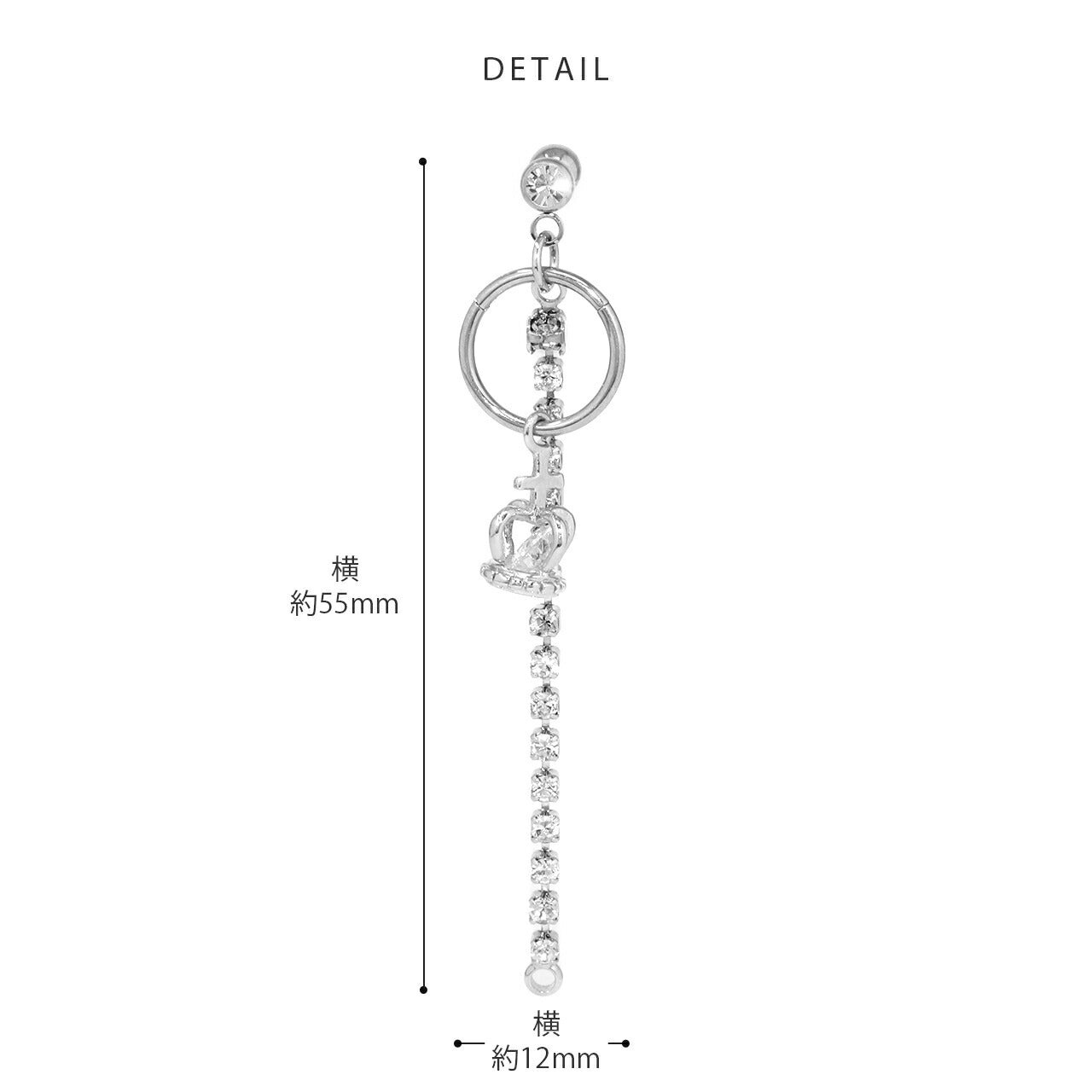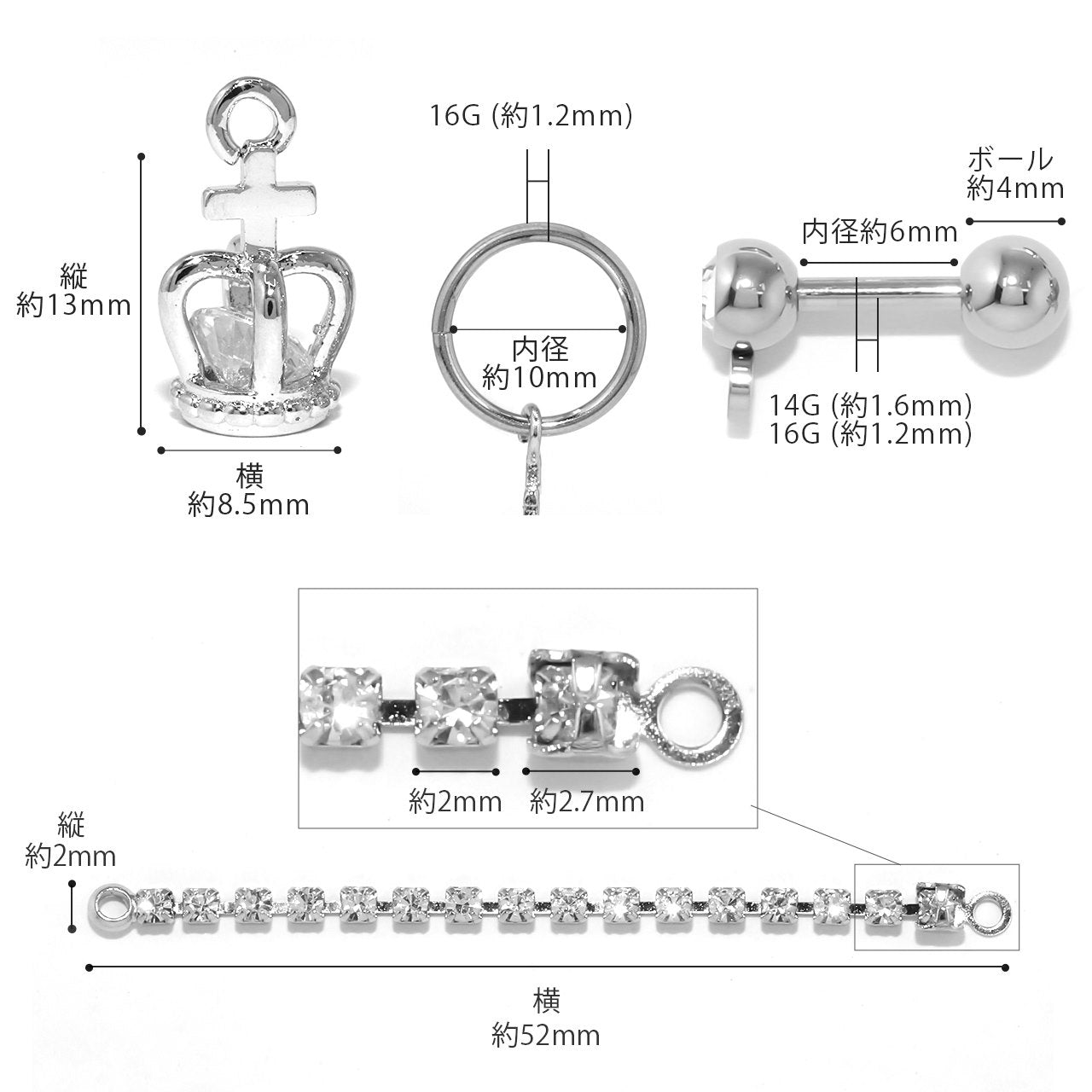 rin-set-009 ボディピアス 14G 16G チャーム クラウン 軟骨ピアス 金属アレルギー 金属アレルギー対応 サージカルステンレス ステンレス 冠 ジュエル パーツ チェーン リング カスタムピアス カスタム カスタマイズ 揺れる 耳 セット 片耳用