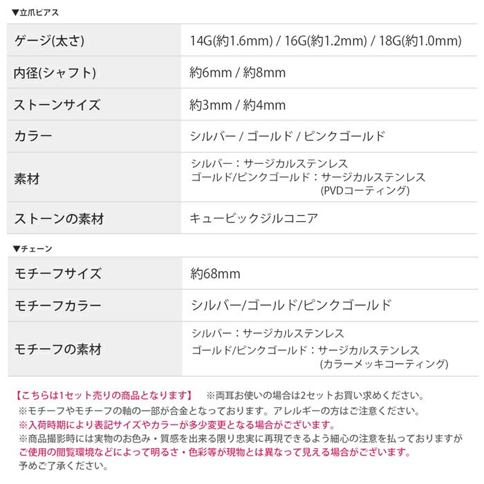 シルバー:サージカルステンレス ゴールド ピンクゴールド:サージカルステンレス(カラーメッキコーティング)