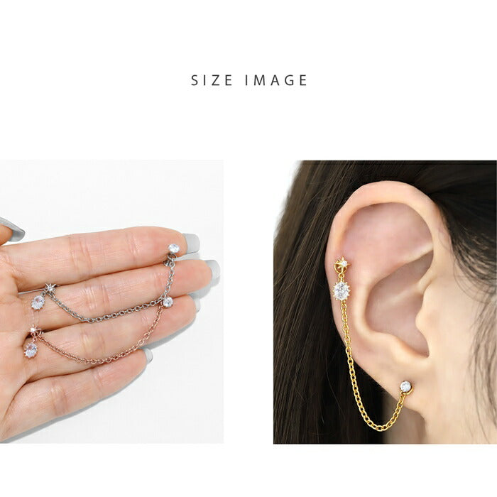 rin-set-013 ボディピアス 軟骨ピアス セット 16G 金属アレルギー対応 金属アレルギー サージカルステンレス つけっぱなし ストレートバーベル 立爪 チェーン レディース 女性 大人 仕事 オフィス きれい かわいい おしゃれ シンプル シルバー ゴールド ピンクゴールド カスタム
