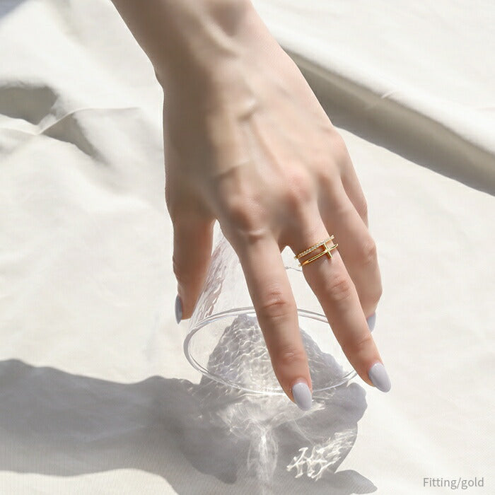 リング 指輪 レディース 十字 2連 スタイリッシュ キュービックジルコニア 18K オープンリング リング0018 ring-18