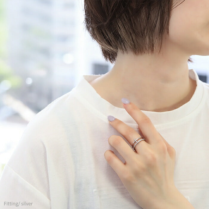 ring-18 リング 指輪 レディース クロス 2連 シルバー ゴールド 金属アレルギー シンプル 18k 18金 k18 ニッケルフリー 12号 ファッションリング ゴールドリング シルバーリング 18Kコーティング ストーン キラキラ キュービックジルコニア 上品 大人可愛い 凛
