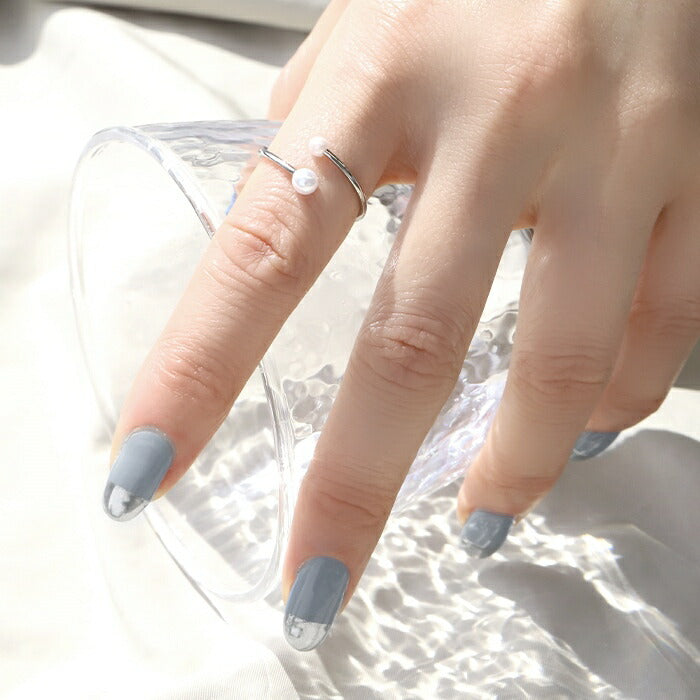 ring-19 リング 指輪 レディース ステンレス パール シルバー 金属アレルギー シンプル サージカルステンレス 11号 ファッションリング シルバーリング フォークリング 巻き付け 上品 大人 可愛い 重ね付け エレガント おしゃれ パールリング アクセサリー 凛