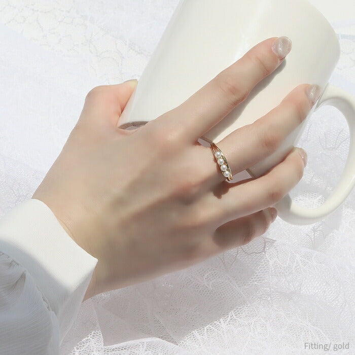 リング 指輪 パール 4連パール シンプル 16kコーティング 16金 12号 オープンリング サイズ調整 リング0025 ring-25