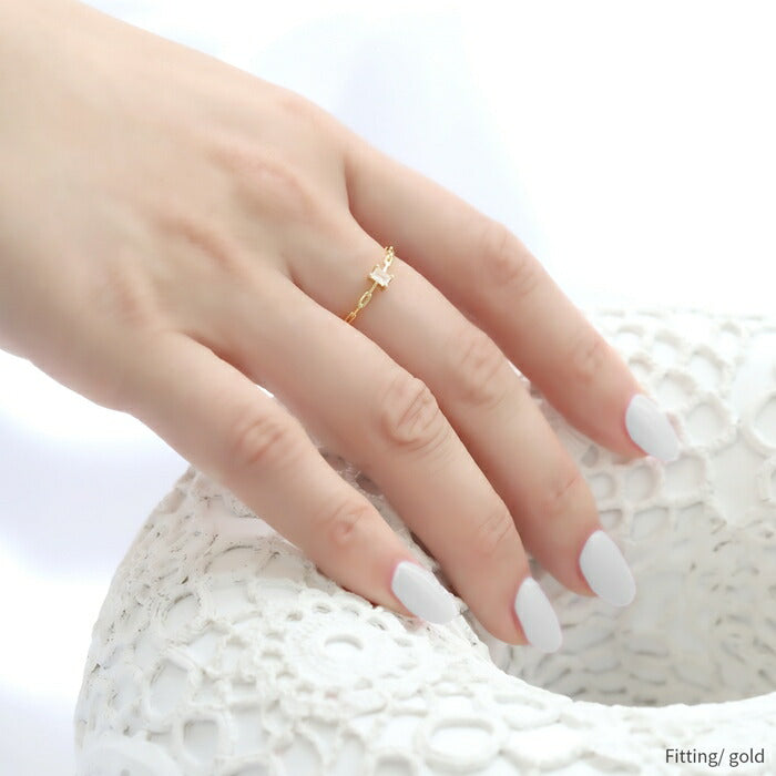 ring-32 リング 指輪 レディース バゲットカット シルバー ゴールド シンプル 18k 18金 10号 11号 13号 チェーン キュービックジルコニア ファッションリング チェーンリング ゴールドリング シルバーリング 大人 大人可愛い ハンドメイド キラキラ 重ね付け 細い 凛