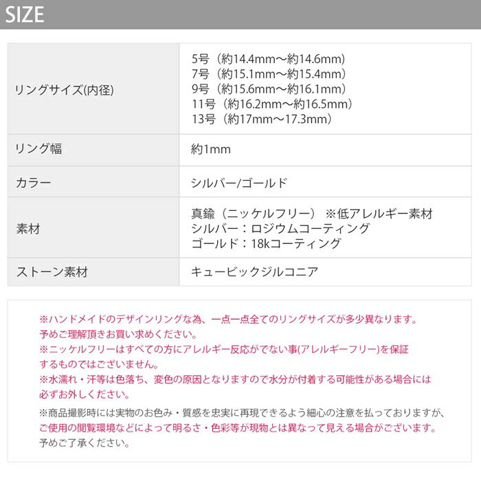 ring-34 リング 指輪 レディース シルバー ゴールド シンプル 18k 18金 5号 7号 9号 11号 13号 金属アレルギー 重ね付け 重ねづけ キュービックジルコニア ファッションリング ゴールドリング シルバーリング 大人 可愛い ハンドメイド キラキラ 細い CZ 凛