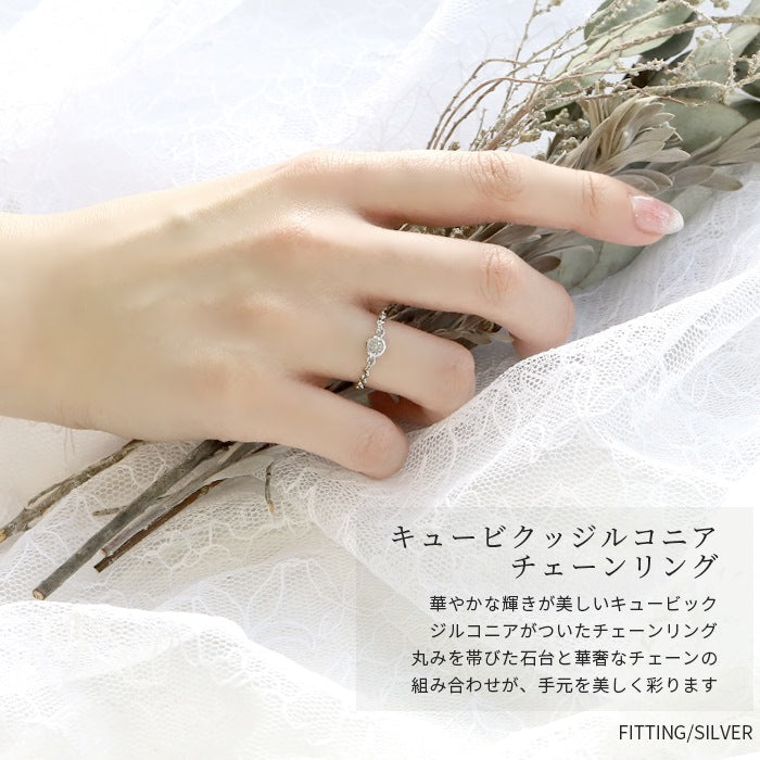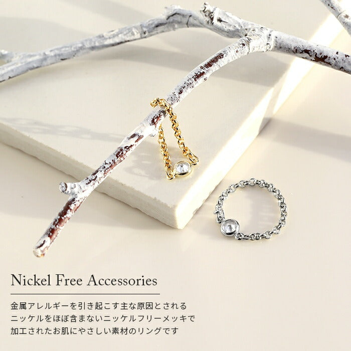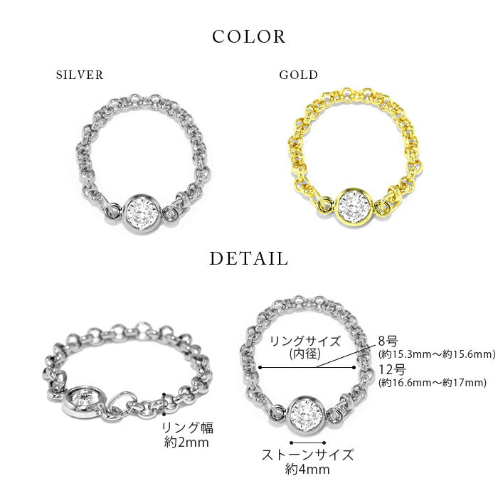 ring-6 リング 指輪 チェーン レディース シルバー ゴールド 金属アレルギー シンプル 18k 18金 k18 ニッケルフリー 8号 12号 フクリン ファッションリング ゴールドリング シルバーリング キラキラ キュービックジルコニア 一粒 大人 お洒落 上品 ハンドメイド 大人可愛い 凛
