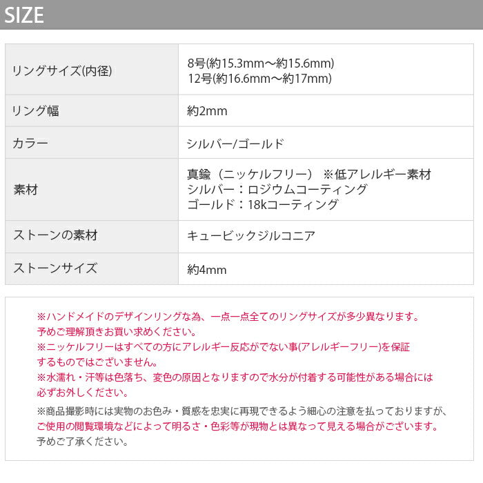 ※ハンドメイドのデザインリングな為、一点一点全てのリングサイズが多少異なりますので予めご理解頂きお買い求めください。