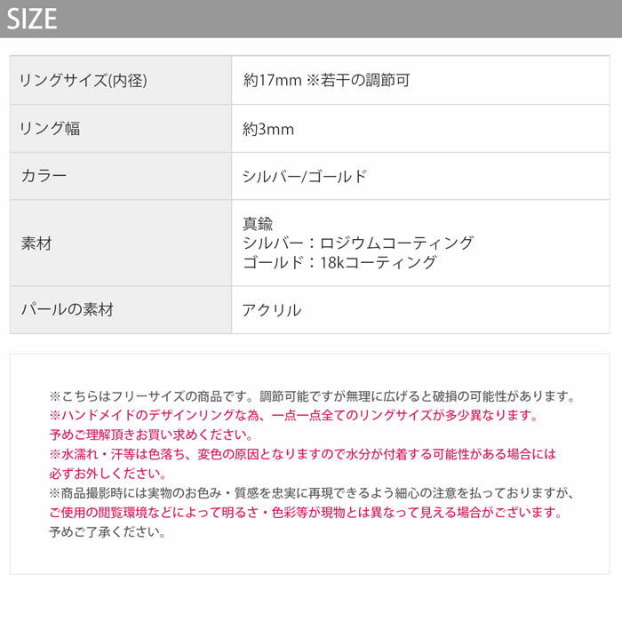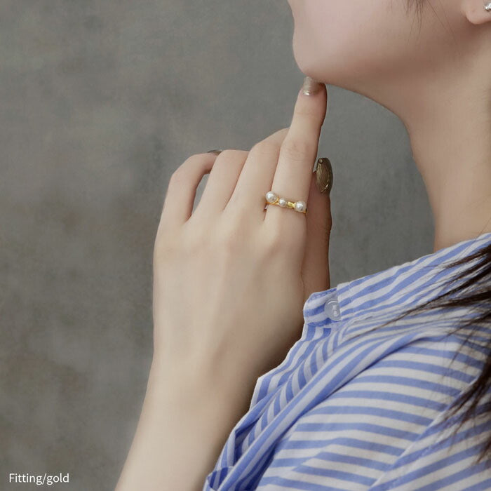 ring-61 リング 指輪 レディース アクセサリー シルバー ゴールド シンプル 真珠 パール パールリング 3連 アクリル 18k 重ね付け 重ねづけ レイヤード ファッションリング ゴールドリング シルバーリング カジュアル 17mm 女性 凛