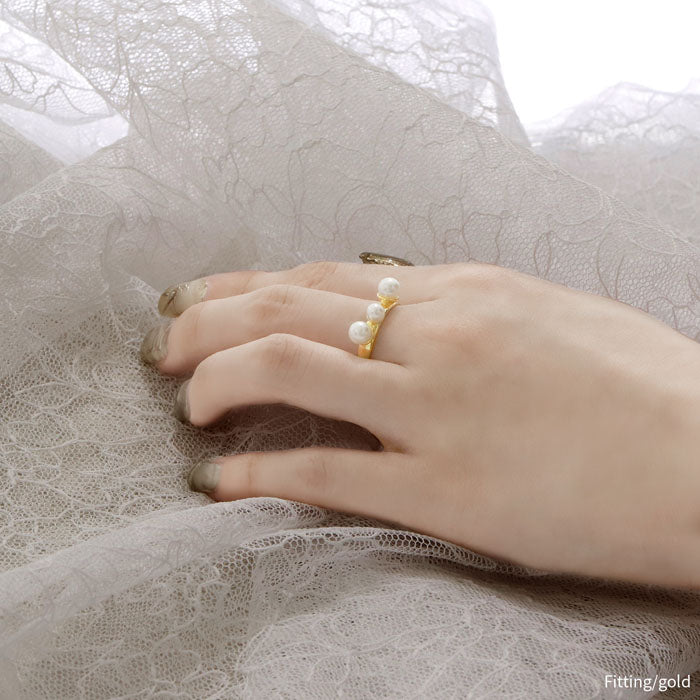 リング パール 3粒 フリーサイズ オープンリング リング0061 ring-61