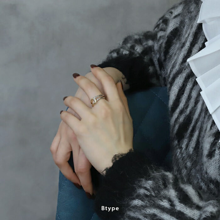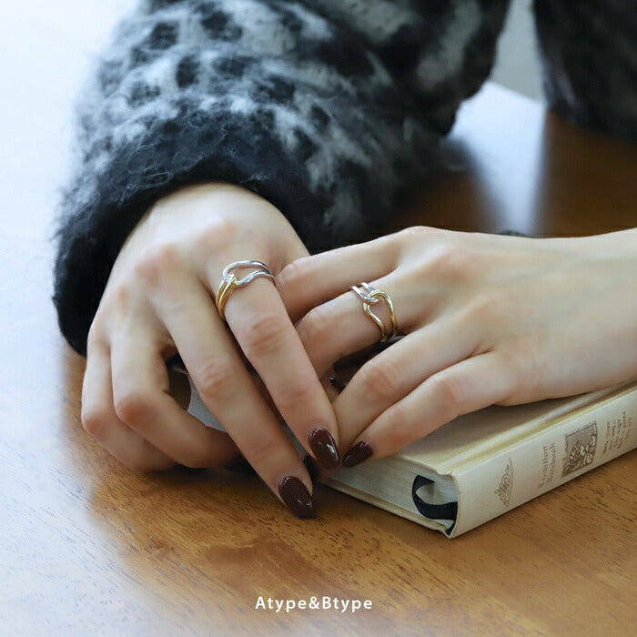 ring-77 リング 指輪 ダブルラインリング レディース アクセサリー オープンリング バイカラー コンビカラー ミックスカラー シルバー ゴールド シンプル 14号 ファッションリング ゴールドリング シルバーリング 高見え 高みえ 凛