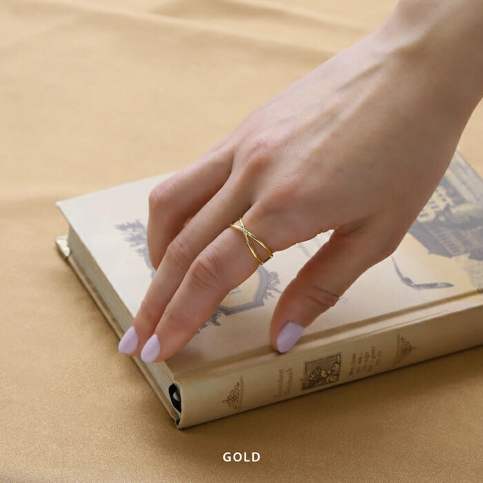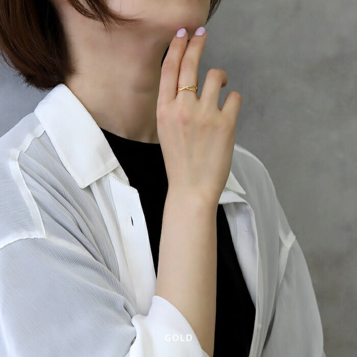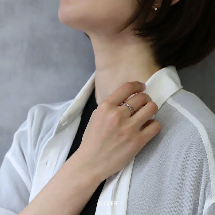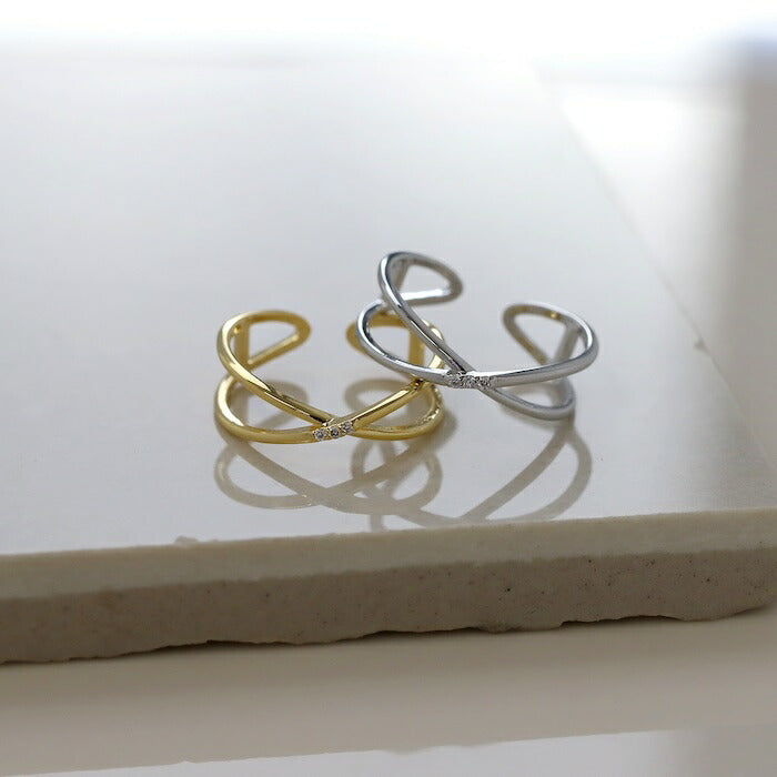 ring-87 リング 指輪 オープンリング クロス ひねり レディース ジュエリー アクセサリー シルバー ゴールド シンプル 低アレルギー 12号 ファッションリング ゴールドリング シルバーリング キュービックジルコニア 細い 細め 高見え 高みえ 贈り物 凛