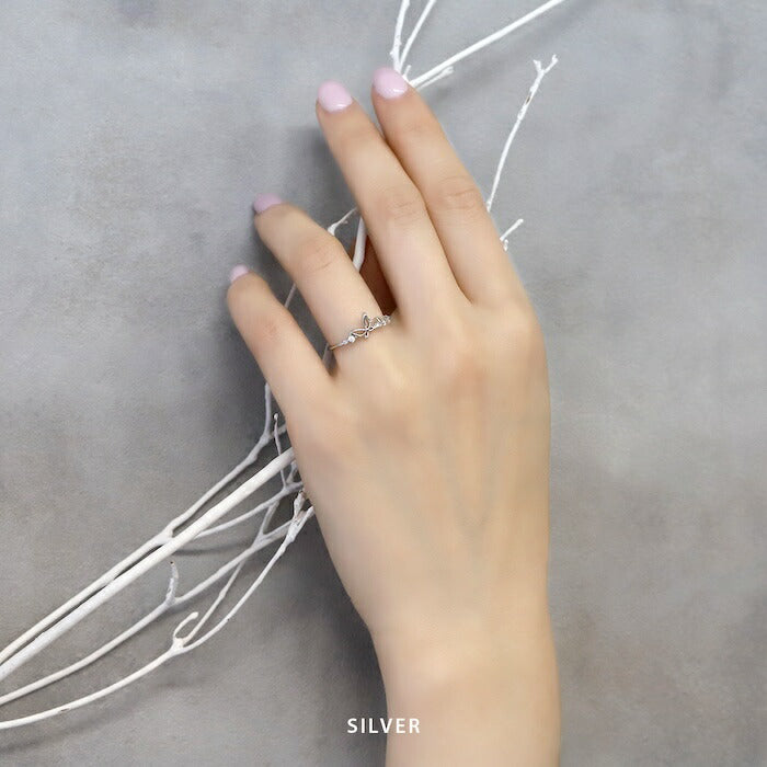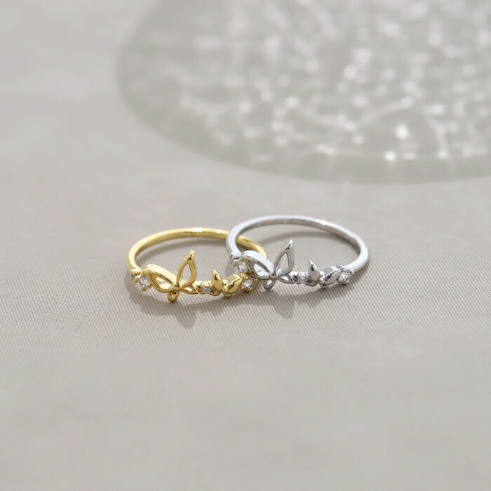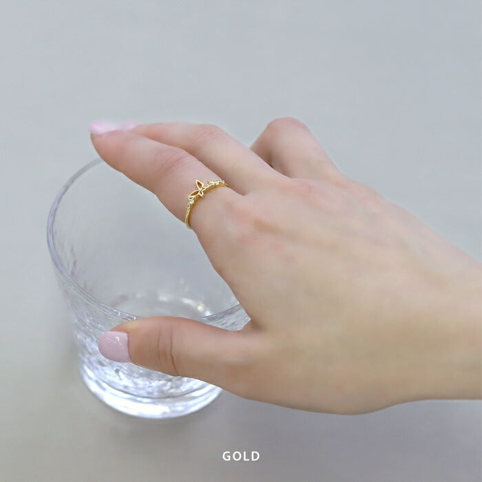 ring-90 リング 指輪 レディース ジュエリー アクセサリー 蝶 バタフライ シルバー ゴールド シンプル 低アレルギー 5号 9号 11号 13号 16k 16金 ファッションリング ゴールドリング シルバーリング キュービックジルコニア 細い 細め 高見え 高みえ 凛