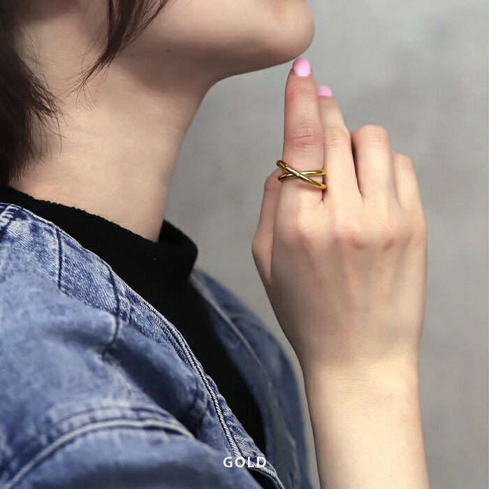 ring-92 リング 指輪 ゆびわ レディース シルバー ゴールド シンプル ツイストリング クロスリング サークルリング 18k 18金 12号 金属アレルギー 重ね付け 重ねづけ ロジウムコーティング ファッションリング ゴールドリング シルバーリング 大人 細い 凛