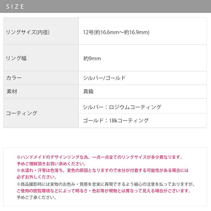 ※ハンドメイドのデザインリングな為、一点一点全てのリングサイズが多少異なりますので予めご理解頂きお買い求めください。