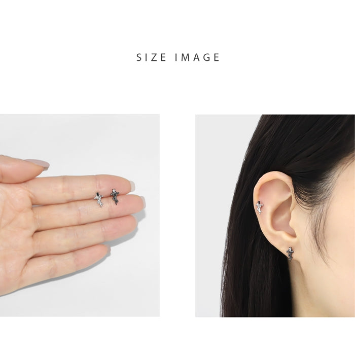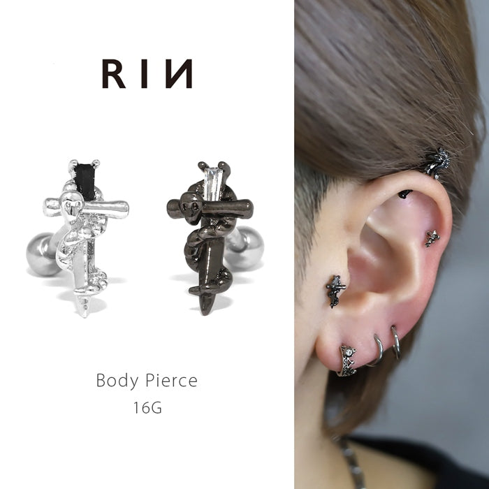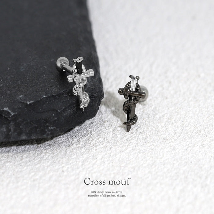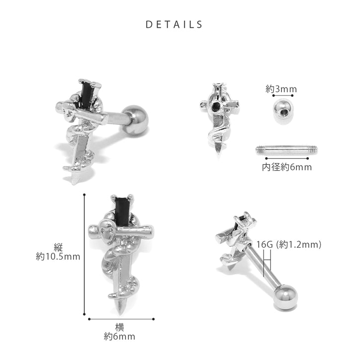 s17-003 16G ヘビ 蛇 剣 クロス キュービックジルコニア ストレートバーベル 【片耳用】
