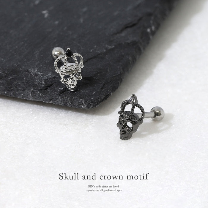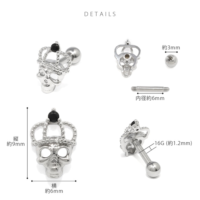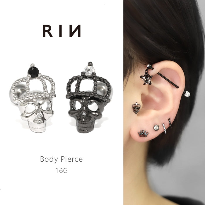 s17-004 16G ドクロ 骸骨 王冠 クラウン ストレートバーベル 【片耳用】