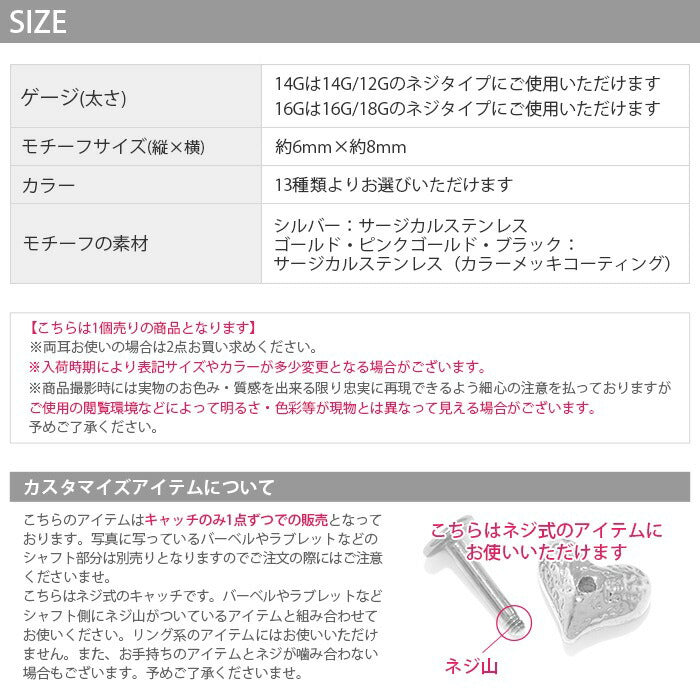 18G/16G 14G/12G ハート ジュエル キャッチ カスタマイズ0077 s2f-113-135-16g
