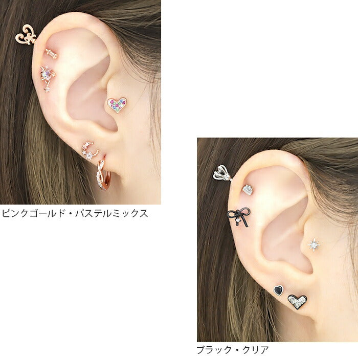 【全品送料無料】 ボディピアス キャッチ 14G 軟骨ピアス 16G かわいい ハート ピアス カスタマイズ 12G 18G トラガス 凛 軟骨用 ジュエル クリア ピンク ミックス 金属アレルギー対応 耳 おしゃれ 人気上昇中 ピアス パーツ アレンジ カスタム