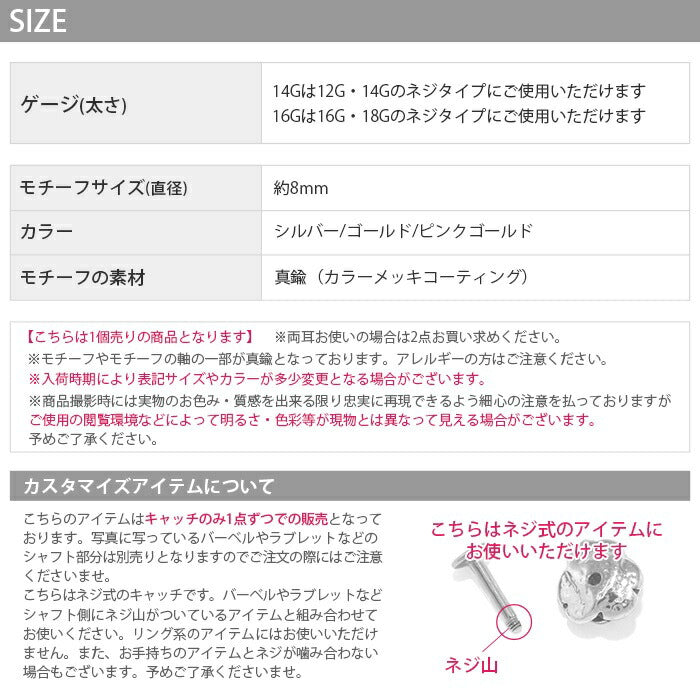 16G・18G 14G・12G キャッチ パーツ ネジ式 バラ 薔薇 ボール パーツ カスタマイズ0080 s2f-113-138-14g