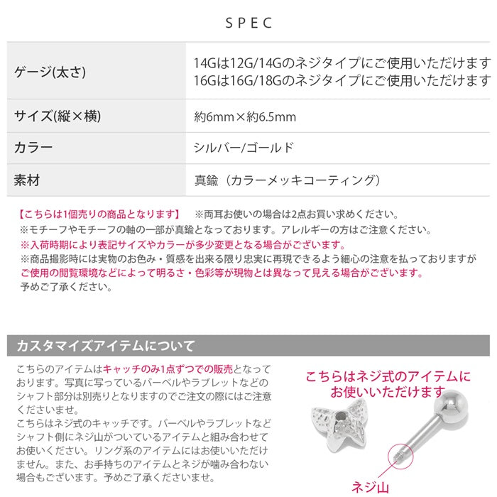 [14G・12G/16G・18G]カスタマイズ0095 ボディーピアス アクセサリー ピアスキャッチ おしゃれ 12ゲージ 14ゲージ 16ゲージ 18ゲージ s2f-113-140-c