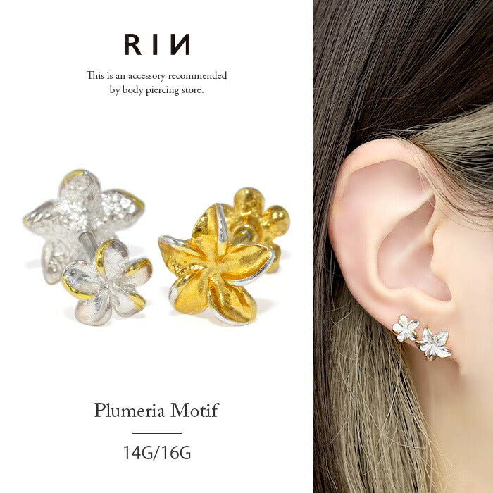 16G 14G 軟骨ピアス プルメリア 南国 ハワイ 花 ダブルフェイス ボディピアス ストレートバーベル 軟骨0281 s2f-113-144