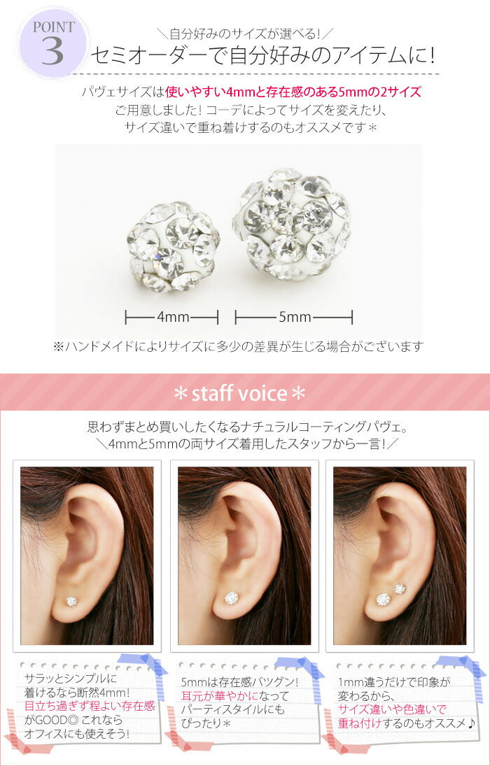 [14G・12G/16G・18G]カスタマイズ0082/キャッチ/パーツ/ネジ式/ナチュラルコーティングパヴェ