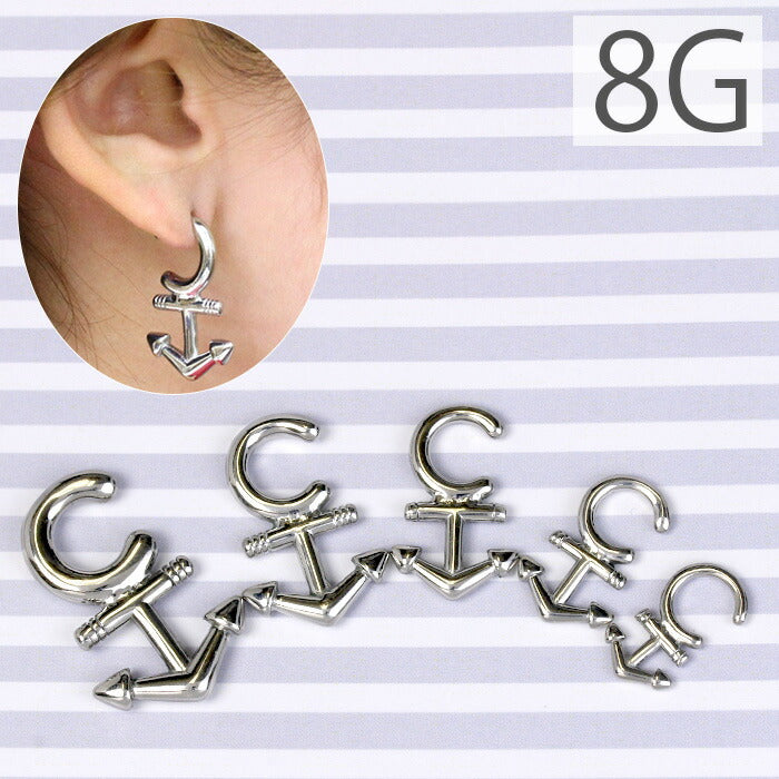 【全品送料無料】 ボディピアス 軟骨ピアス 8G サージカルステンレス 金属アレルギー対応 碇 錨 マリン トライバル 変形 個性的 ユニーク シルバー スタイリッシュ ラージゲージ セカンドピアス 軟骨用 軟骨 ピアス ボディーピアス