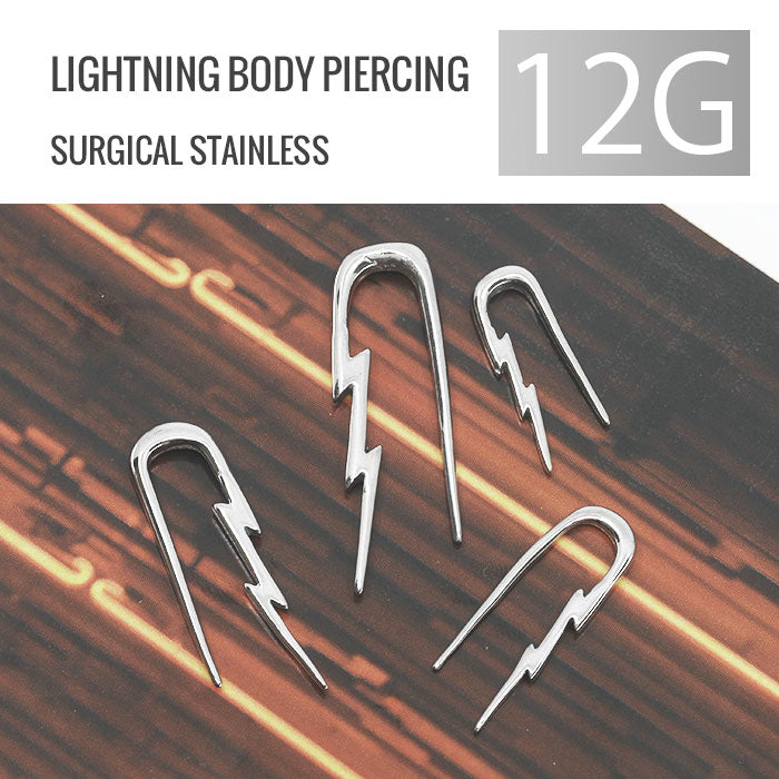 【全品送料無料】 ボディピアス 軟骨ピアス 12G サージカルステンレス 金属アレルギー対応 雷 カミナリ かみなり サンダー 稲妻 イナズマ トライバル 変形 個性的 ユニーク シルバー スタイリッシュ ラージゲージ セカンドピアス 軟骨用 軟骨 ピアス ボディーピアス