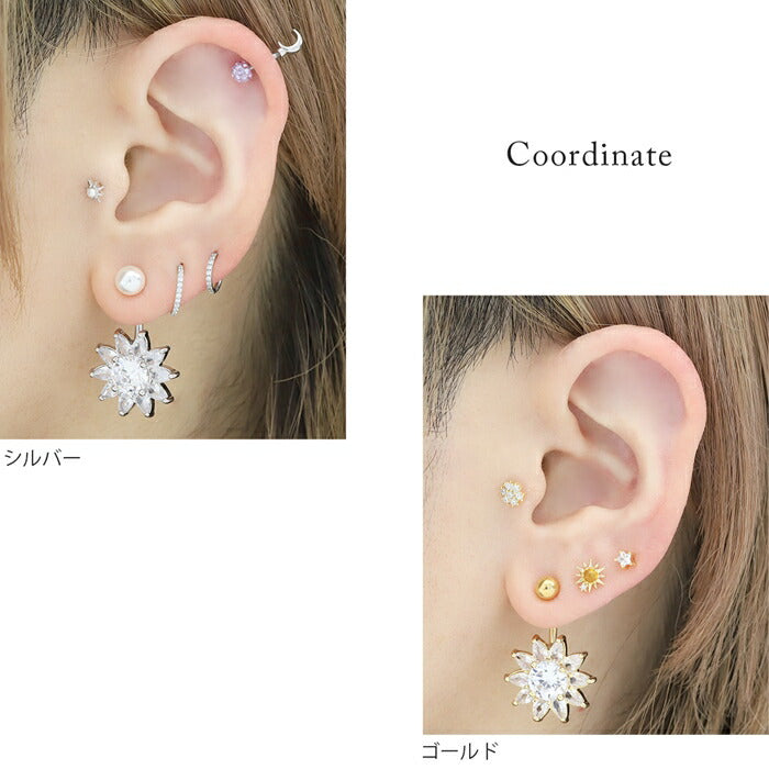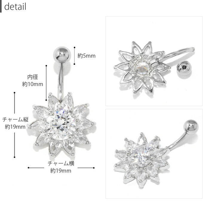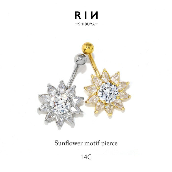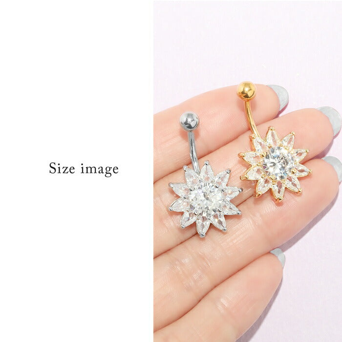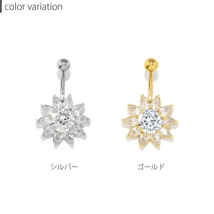 【金属アレルギー対応】 へそピアス 軟骨ピアス ボディピアス 14G つけっぱなし キャッチ サージカルステンレス ヘソピアス ファーストピアス セカンドピアス シルバー ゴールド ジュエル 花 フラワー 夏 太陽 かわいい ボディーピアス 片耳用 へそぴ ヘソピ へそピ