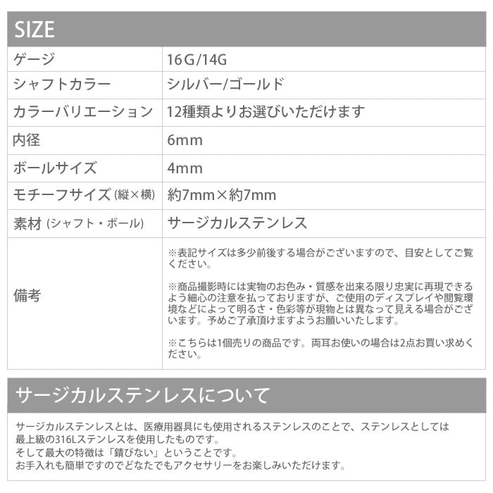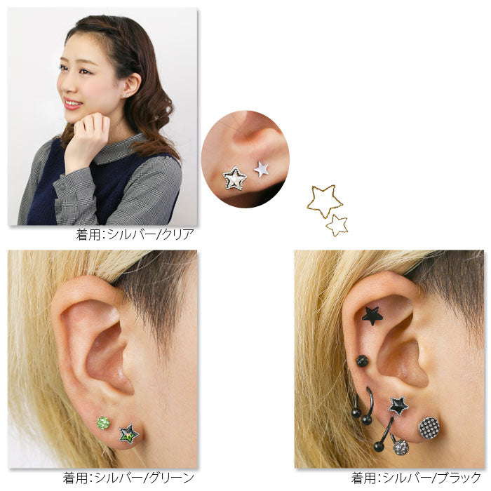 [16G/14G]軟骨0437/スター/星/ジュエル/シルバー/ゴールド