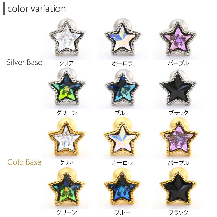 s2f-113-206 軟骨ピアス 16G ボディピアス かわいい キャッチ チャーム サージカルステンレス 金属アレルギー対応 ジュエル 星 スター リング キラキラ ストレートバーベル ヘリックス ロブ バーベル おしゃれ ファーストピアス セカンドピアス メンズ ボディーピアス