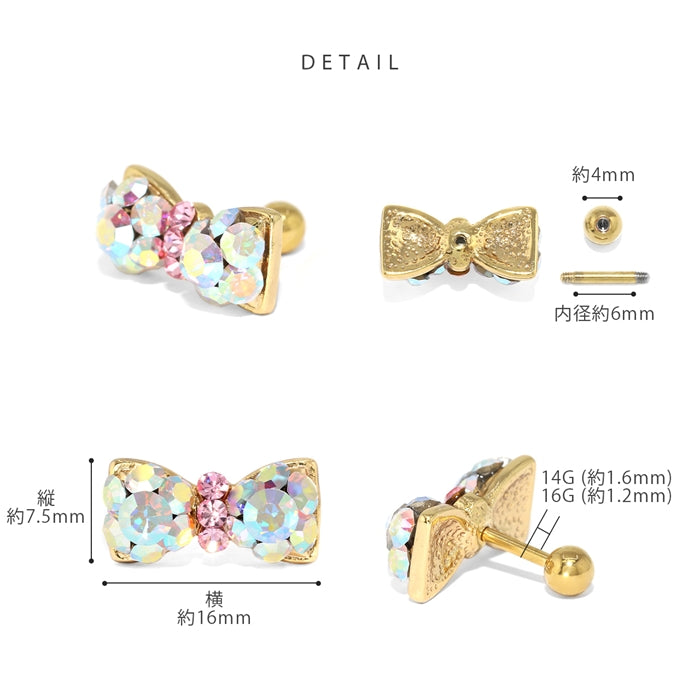 s2f-33-11-gd【全品送料無料】 軟骨ピアス 14G 16G ボディピアス かわいい キャッチ チャーム サージカルステンレス 金属アレルギー対応 リボン りぼん キラキラ おしゃれ ストレートバーベル アウターコンク ファーストピアス セカンドピアス メンズ 軟骨 ピアス ボディーピアス