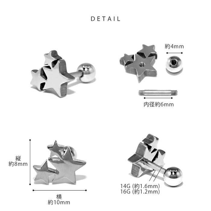 トリプルスター 星 14G 16G 軟骨ピアス ボディピアス ストレートバーベル 軟骨0235 s2f-33-126