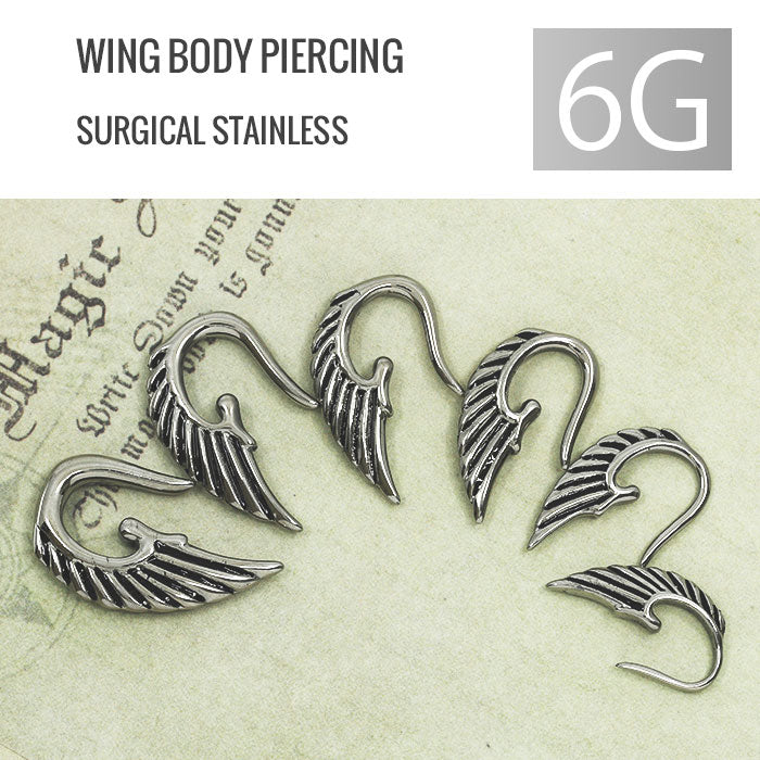 【全品送料無料】 ボディピアス 軟骨ピアス 6G サージカルステンレス 金属アレルギー対応 羽 フェザー 翼トライバル 変形 個性的 ユニーク シルバー スタイリッシュ ラージゲージ セカンドピアス メンズ 軟骨用 軟骨 ピアス ボディーピアス