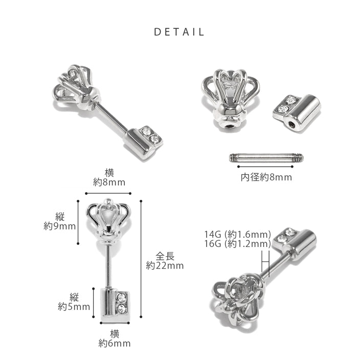 14G 16G フェミニンキーモチーフピアス クラウン 王冠 鍵 軟骨0031 s2f-33-25-14g