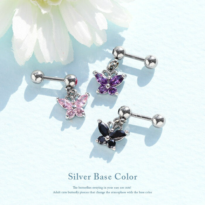 蝶 バタフライ チャーム ストレートバーベル 軟骨チャーム付0017 s2f-33-33-14g-sv