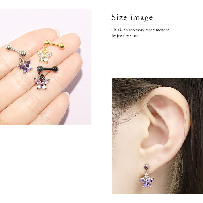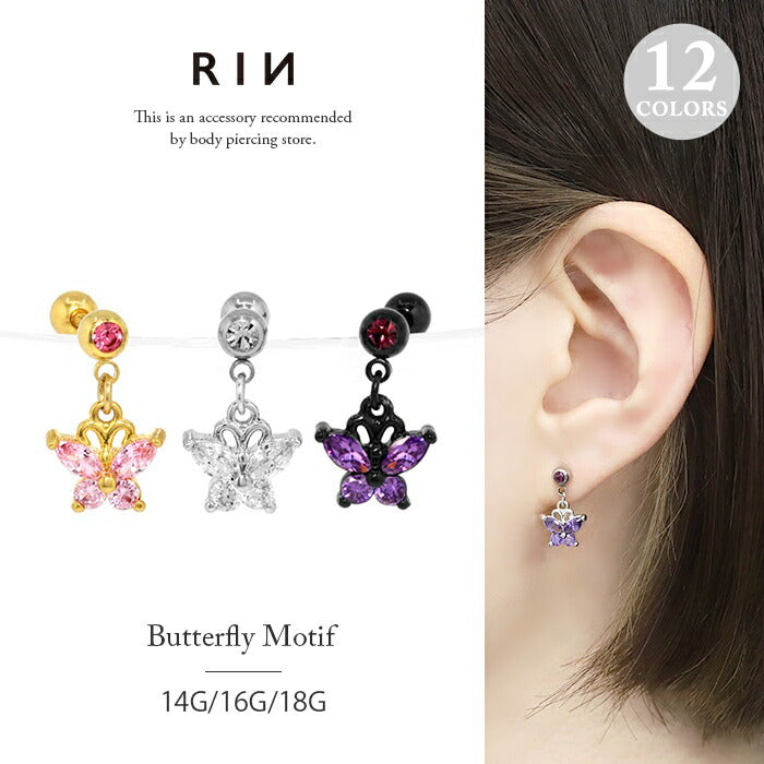 ★【全品送料無料】 軟骨ピアス 14G 16G 18G ボディピアス かわいい キャッチ チャーム サージカルステンレス 金属アレルギー対応 蝶 ストレートバーベル シルバー ゴールド ストレートバーベル 黒 ブラック ボディピ おしゃれ