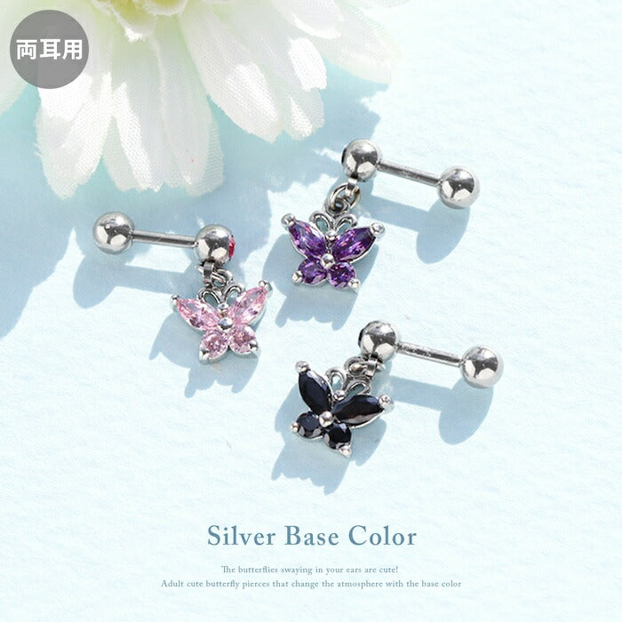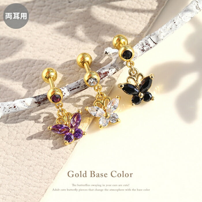 s2f-33-33-2 ピアス ボディピアス 14G 16G 18G 金属アレルギー 金属アレルギー対応 サージカルステンレス キュービックジルコニア 蝶 レディース オシャレ かわいい シンプル チャーム シルバー ゴルドー ブラック クリア ピンク パープル 普段使い 【両耳用・2個売り】