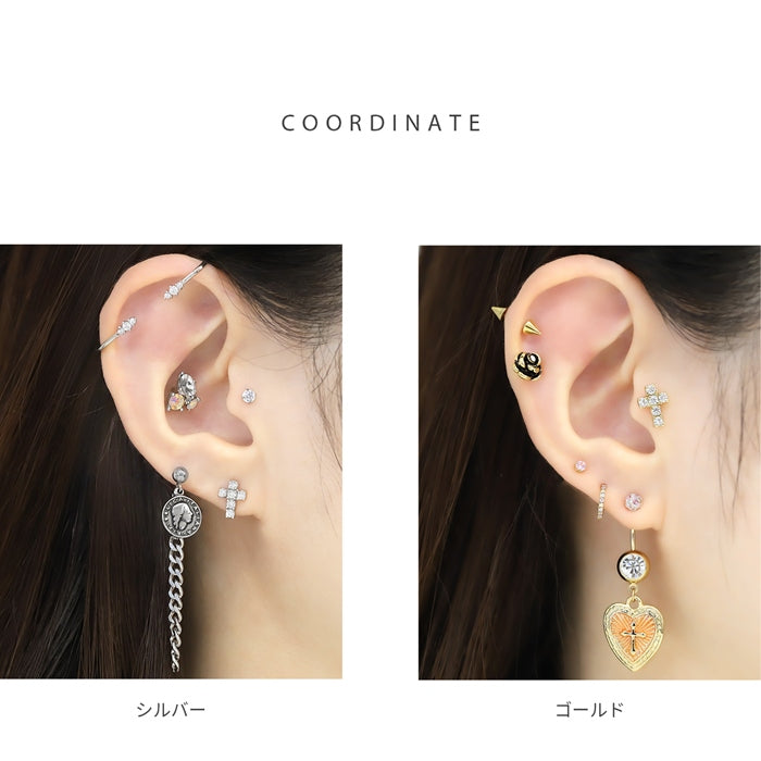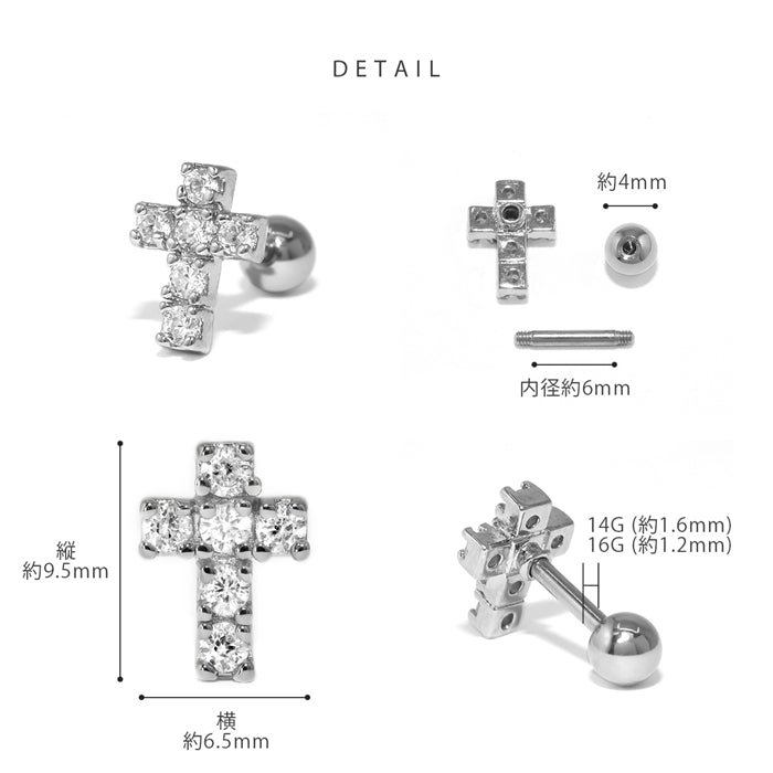 16G ジュエルクロス ジルコニア ストレートバーベル 片耳用 軟骨0220 s2f-33-42-14g