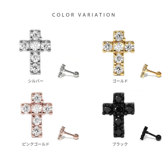 s2f-33-42-14g ボディピアス 16G 14G 軟骨ピアス つけっぱなし サージカルステンレス ストレートバーベル 金属アレルギー対応 十字架 クロス ジュエル スタイリッシュ キラキラ かわいい かっこいい メンズ セカンドピアス 片耳用