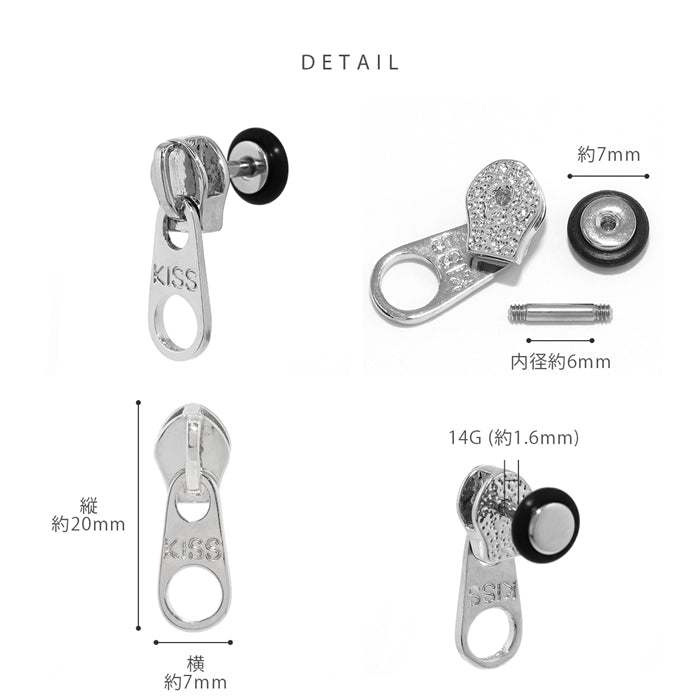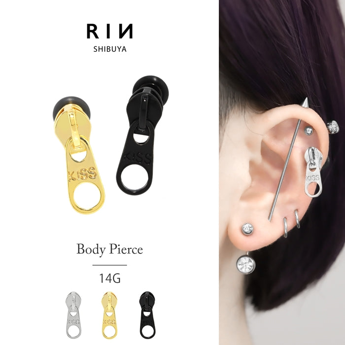 [14G]軟骨0185/ジッパー/チャック/シルバー/ゴールド/ブラック/KISS s2f-33-85