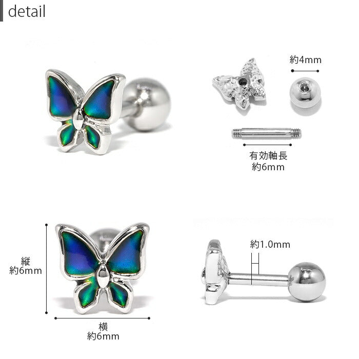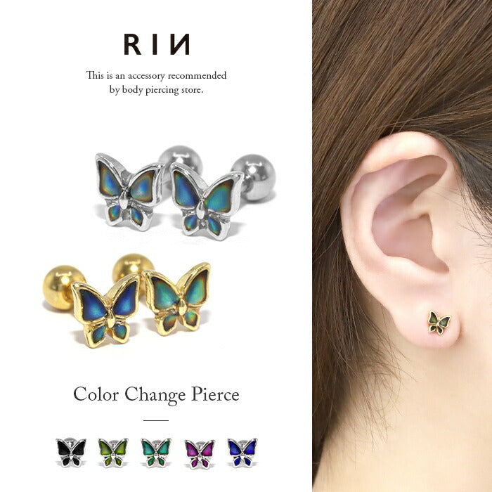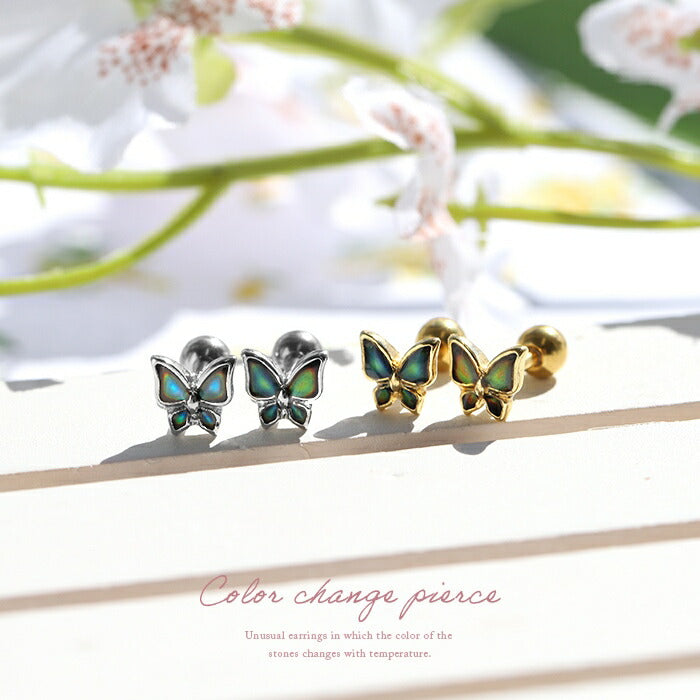【両耳用・2個売り】蝶々 ピアス サージカルステンレス バタフライ 色変化 ストレート スタッド s2f-33-92-2