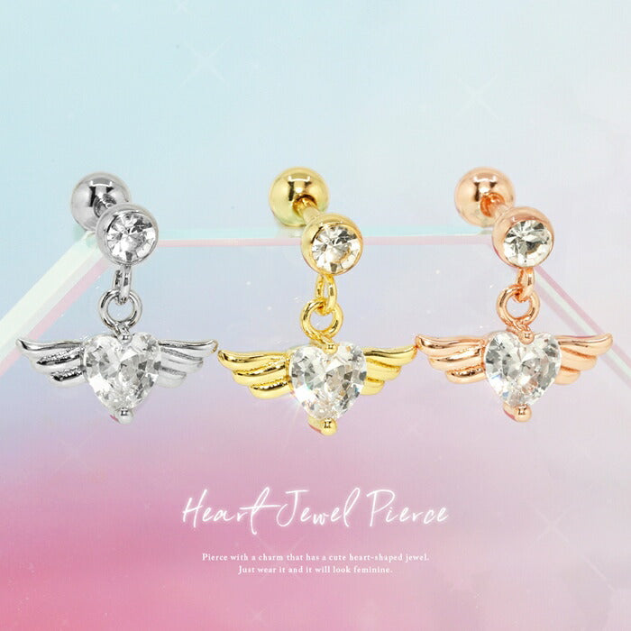 エンジェル 天使 羽 ハートピアス 軟骨チャーム付0023 s2f-62-3