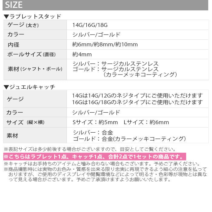set-33-54 ボディピアス キャッチ 18G 16G 14G ラブレット 軟骨ピアス サージカルステンレス 金属アレルギー対応 ジュエルキャッチ ラブレットスタッド ラブレット カスタマイズ 軟骨 ピアス ボディーピアス
