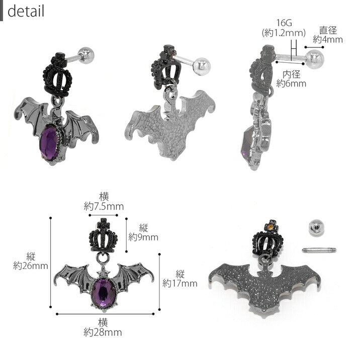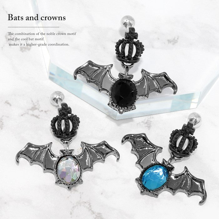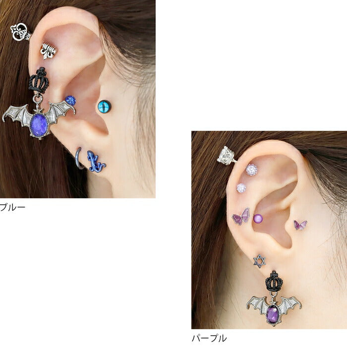 【全品送料無料】軟骨ピアス 16G ボディピアス こうもり 王冠 ストレートバーベル サージカルステンレス かっこいい ユニセックス メンズ 個性的 ゴシック スタイリッシュ カスタム なんこつぴあす ボディーピアス ピアス Pierce 片耳用