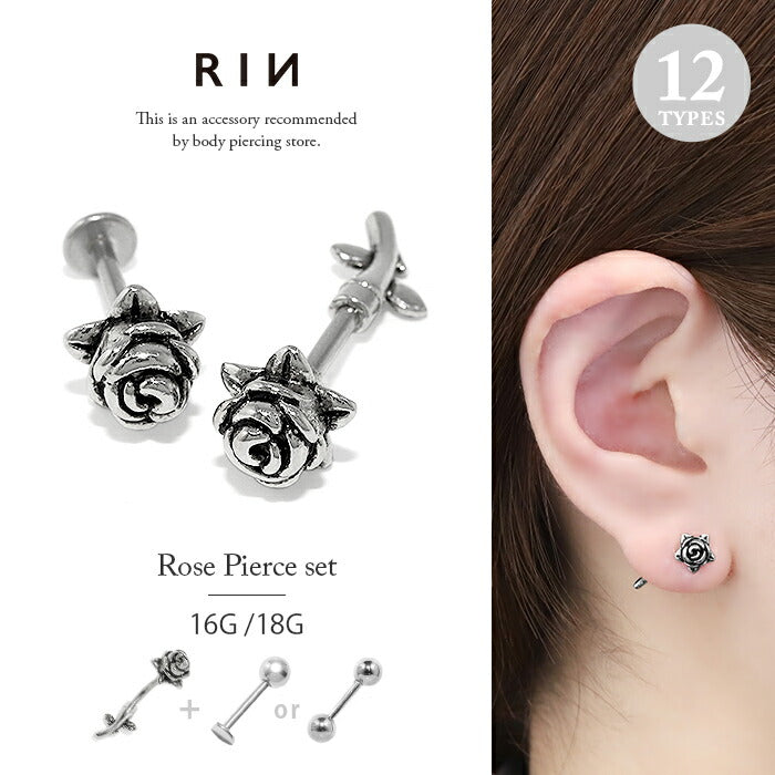 軟骨ピアス ボディピアス 16G 薔薇 バラ 花 かわいい ピアス 金属アレルギー サージカルステンレス バナナバーベル ストレートバーベル ラブレットスタッド シルバー ステンレスピアス セカンドピアス フラワー ばら お花 カスタム 片耳用 耳 軟骨用 耳たぶ用【セット】